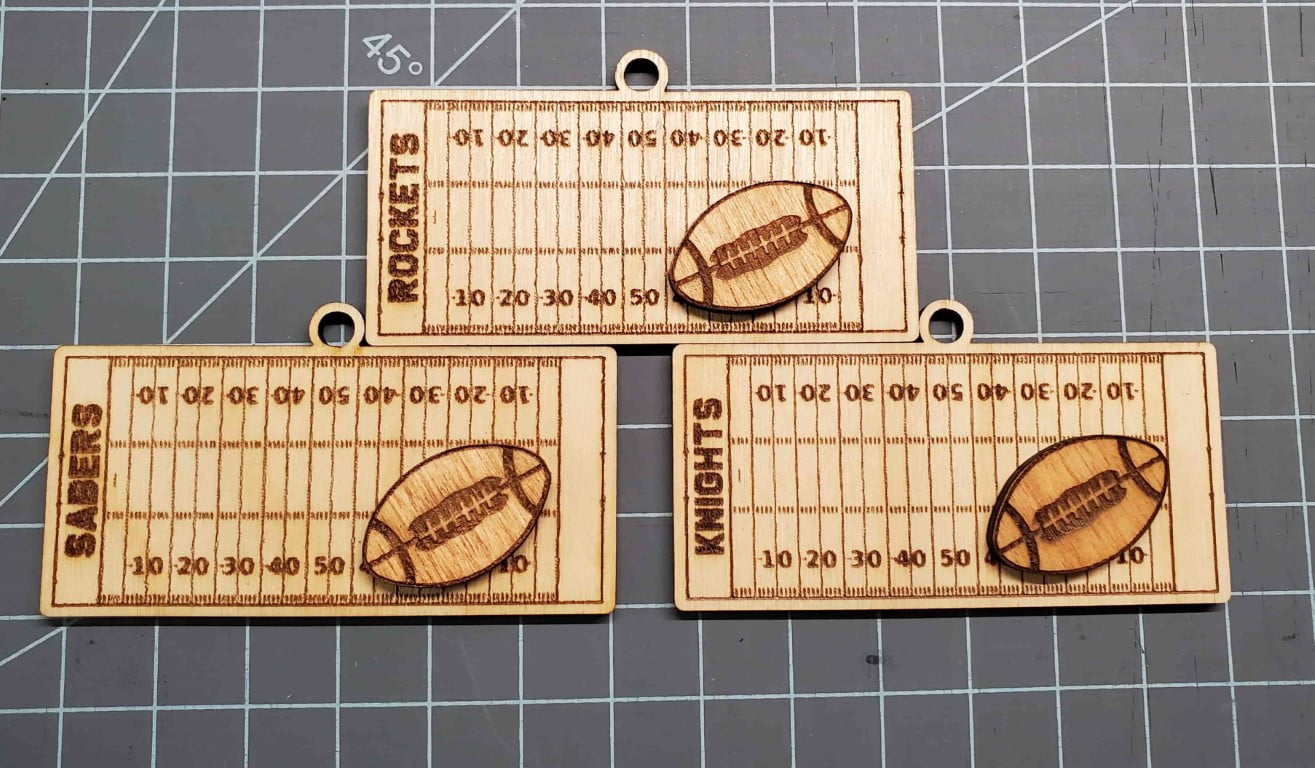 Personalizable football field ornament. 3D layered design.
